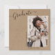 Esta elegante y minimalista tarjeta de invitación de graduación, presenta elementos de diseño de texto moderno fusionado con escritura caligráfica en una imitación de papel falso kraft. La foto de los graduados se coloca artísticamente en la parte delantera de la tarjeta, mientras que la parte posterior ofrece espacios de texto personalizados para información sobre la graduación y el viaje futuro. Para ver más artículos como este, visita mi tienda aquí en "www.Zazzle.com/LakeViewCardCo". ¡Gracias