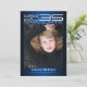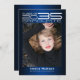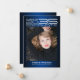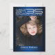 Moderno estilo de ciencia ficción de alta tecnología, tarjetas de invitación de fotos para graduación, con elementos de diseño de sofisticada tipografía futurista que dice "Clase de graduado 2023" tu nombre y nombre escolar. La parte posterior de la tarjeta ofrece espacios de texto personalizados para obtener información sobre su graduación y viaje futuro. Los colores son texto de color blanco y gris plateado en tonos degradados de azul o cambian fácilmente el color de fondo como desee. Perfecto para todos los estudiantes de secundaria, universitarios, universitarios y de tecnología.