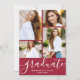 Añade tus cuatro fotos favoritas al frente de estas invitaciones a la fiesta de graduación con letras de grado y clase de en moda en un fondo de color rojo oscuro. Haga clic en el enlace adicional del Personalizar para cambiar a cualquier color utilizando nuestras herramientas de diseño. MÁS diseños y colores hechos en nuestra tienda incluyendo invitaciones, guardar las tarjetas de fecha y postales.