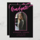 Celebra la graduación de la escuela secundaria, la universidad o la universidad de su hija con una hermosa tarjeta de Invitación de guion negra y rosa caliente, estilo arco elegante. Marque la graduación de su hija con esta moderna tarjeta de Invitación fotográfica de caligrafía rosada caliente, diseñada para captar el espíritu de la ocasión. Con un elegante guión de caligrafía rosa sobre un llamativo fondo negro y un elegante arco rosa cálido, esta carta exuberante estilo y encanto. La parte delantera muestra el graduado de la palabra en una elegante caligrafía de escritura rosa caliente que complementa el nombre de su hija y los detalles de su graduación en tipografía contemporánea rosa caliente con un llamativo fondo negro, mientras que la parte posterior resalta información adicional en la moderna tipografía rosa caliente. Esta tarjeta incluye una plantilla de fotos fácil de usar, que le permite personalizarla con una preciada foto de su graduado, lo que lo hace único suyo. El original diseño y obra de arte de la artista Catherine Sweetman es una forma impresionante de conmemorar sus logros en la universidad y compartir la alegre ocasión con amigos y familiares.