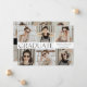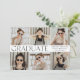 Celebra tu graduación con esta elegante y minimalista invitación de collage de 12 fotos. La parte frontal presenta seis fotos cuadradas con "Graduado" en negrita con letras modernas en negro sobre un fondo blanco y fresco, mientras que la parte posterior ofrece seis franjas fotográficas más y espacio para texto personalizado como planes futuros, detalles de la fiesta de graduación o un mensaje personal. Personalice la invitación con el nombre del graduado, la escuela y el año de graduación por un toque único. Perfecto tanto para graduados de secundaria como universitarios, esta invitación versátil y elegante es una manera memorable de compartir su logro con la familia y amigos.
