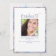 Moderna invitación de graduación con un título GRADUATE de pincel multicolor en la parte delantera y trasera con un total de 4 fotos (3 en la parte delantera y una en la parte posterior). La parte trasera ofrece un lugar para incluir información adicional sobre el graduado (logros y/o planes futuros). PUNTO DE FOTO: Prerecortar/dimensionar tus fotos en una forma similar a la mostrada o tener el tema en el medio ANTES de subir para obtener resultados más rápidos y fáciles. Póngase en contacto con el diseñador a través de Zazzle Chat o makeitaboutyoustore@gmail.com si desea modificar este diseño, en otro producto o si desea coordinar elementos.