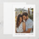 ¡Celebra tu historia de amor con esta hermosa y moderna tarjeta de anuncio de fuga! Este diseño de "nos fugamos" presenta un diseño minimalista que muestra elegantemente tu foto de boda favorita, lo que la convierte en un recuerdo perfecto para amigos y familiares. Personaliza la tarjeta con tu apellido y fecha de fuga para un toque único. Ideal para parejas que buscan una forma contemporánea y sofisticada de compartir la noticia de su matrimonio, este anuncio de fuga es imprescindible. Ya sea que hayas tenido una ceremonia íntima o una boda en destino, esta tarjeta de foto de boda es la forma perfecta de anunciar tu día especial. Diseñada para reflejar tu estilo, combina elementos de un anuncio de boda minimalista y una tarjeta de boda moderna. Utiliza esta tarjeta de foto de fuga para capturar la esencia de tu relación y crear un recuerdo memorable. Esta tarjeta de fuga personalizada hace una declaración, con su diseño limpio y texto personalizable, lo que garantiza que tu anuncio de boda con foto sea tan único como tu historia de amor. Perfecta para enviar a seres queridos, esta tarjeta de anuncio de pareja hará que todos sepan que los recién casados se han casado con estilo.