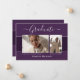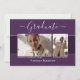 Hermosa foto 7"x5", tarjetas de invitación de graduación. Con texto moderno con un guión elegante de caligrafía. Tus fotos están muy bordeadas con un guarnecido blanco para ese "Pop" extra. El diseño se complementa con un fondo regal en tonos tierra morados. La parte posterior de la tarjeta ofrece un espacio de texto de invitación personalizado para ese graduado especial. Para ver más artículos como este, visita mi tienda aquí en "www.Zazzle.com/LakeViewCardCo". ¡Gracias
