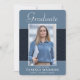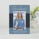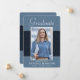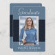 Hermosa foto 5"x7", tarjetas de invitación de graduación. Con texto moderno con un guión elegante. La foto de los graduados está muy bordeada en un borde blanco y un adorno decorativo ondulado. El diseño se complementa con un fondo en tonos azul polvoriento. La parte posterior de la tarjeta ofrece un espacio de texto de invitación personalizado para ese graduado especial. Para ver más artículos como este, visita mi tienda aquí en "www.Zazzle.com/LakeViewCardCo". ¡Gracias