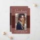 Hermosa foto 5"x7", tarjetas de invitación de graduación. Con texto moderno con un guión elegante. La foto de los graduados está muy bordeada en un borde blanco y un adorno decorativo ondulado. El diseño se complementa con un fondo de terracota. La parte posterior de la tarjeta ofrece un espacio de texto de invitación personalizado para ese graduado especial. Para ver más artículos como este, visita mi tienda aquí en "www.Zazzle.com/LakeViewCardCo". ¡Gracias