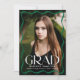 Celebra tu graduado de secundaria o universitario con esta moderna invitación de graduación, que incluye una foto vertical de sangre completa enmarcada por un elegante borde ondulado verde. La negrita y blanca inscripción "Grad" hace una declaración, mientras que el nombre del graduado, la escuela y el año de clase añaden un toque personal. La parte posterior incluye una foto horizontal con espacio para un mensaje personalizado, lo que la convierte en la forma perfecta de compartir este logro especial con la familia y amigos.