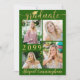 Moderna y sencilla invitación de graduación con tipografía de escritura de caligrafía de oro metálica falsa y tapa de graduación y personalizada con 4 fotos en la parte delantera (1 en la parte posterior) con un color de fondo verde editable o seleccionar un fondo gráfico estilizado. El año de clase también es editable. En la parte trasera se muestra una foto de sangre completa y el texto de su personalizado para obtener más detalles sobre su graduado. ASISTENCIA: Para obtener ayuda con la modificación/personalización del diseño, transfiriendo el diseño a otro producto o si desea coordinar elementos, póngase en contacto con el diseñador ANTES DE PEDIRLO a través de Zazzle Chat o makeitaboutyoustore@gmail.com.