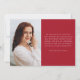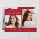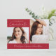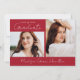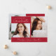 Anuncie los logros y planes de tu graduación con esta elegante y moderna invitación de graduación fotográfica. La parte delantera de la invitación muestra 2 fotos - 1 horizontal y 1 vertical. "Graduado" se muestra en un guión blanco a la moda y escrito a mano con un fondo rojo. Personalice la invitación roja de graduación con el año y el nombre del graduado. La invitación se invierte para mostrar una foto adicional con el texto de su personalizado con letras blancas. Esta invitación de 3 fotos es perfecta para graduaciones de secundaria o universitarias.