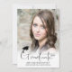 Anuncie el logro de su graduado de secundaria o universitario con esta moderna y simple tipografía manuscrita de escritura, invitación de diseño de títulos GRADUATE con 2 fotos (1 en la parte delantera y 1 en la parte posterior) con un gorro negro de graduación o acento de mortero. La parte posterior ofrece un campo de texto para obtener información sobre los logros, actividades y planes futuros de tu graduado si lo deseas. ASISTENCIA: Para obtener ayuda con la modificación/personalización del diseño, la transferencia del diseño a otro producto o si desea coordinar elementos, póngase en contacto con el diseñador ANTES DE PEDIDOS a través de la pestaña MENSAJE de chat Zazzle o envíe un correo electrónico a makeitaboutyoustore@gmail.com.