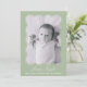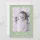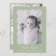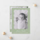 Esta moderna y minimalista tarjeta de anuncio de nacimiento de recién nacidos Neutral Sage Green Gender es moderna y elegante. La tarjeta totalmente personalizable incluye una foto en la parte delantera con el nombre de su bebé, estadísticas de nacimiento y nombres de sus padres. La parte de atrás muestra un collage de tres fotos. Perfecto para compartir su alegría, este minimalista diseño de coqueta es ideal para invitaciones de bebé neutras en cuanto a género. Celebra a tu recién nacido con esta sencilla y elegante tarjeta de invitación.