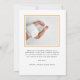 Anuncio de natalidad moderno y ducha de bebé 2 tarjeta de agradecimiento de foto en un diseño simple que incluye una foto favorita de su bebé/familia + una al revés. Carga tu foto y personalizar la parte posterior de la tarjeta con tu mensaje de agradecimiento. Envía gracias a los invitados por asistir y ser parte de tu día especial con esta tarjeta de agradecimiento fotográfico. Presenta una tipografía minimalista negra con acento cardíaco, y las fotos están enmarcadas en un marco falso dorado/beige, lo que añade un toque especial a este diseño, por lo demás minimalista. Personalice agregando nombres, estadísticas del bebé, mensajes y otros detalles. Esta postal moderna y minimalista es perfecta para duchas de bebé, invitaciones de recién nacido y más.