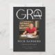 Estos modernos anuncios de graduación en negro, blanco y gris de 5" x 7" muestran la palabra "Grad" en un diseño abstracto. Inserta una de tus fotos favoritas junto con tu nombre, año de graduación, escuela, grado y área de enfoque. La parte trasera tiene un diseño de línea gris claro sobre un fondo negro.