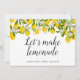 Esta divertida tarjeta de anuncio de cambio de fecha con limones modernos y vegetación se puede personalizar con los detalles de la cancelación. La parte trasera tiene detalles adicionales. ¡Perfecta para bodas, despedidas de soltera, baby showers, bautizos, fiestas de compromiso, celebraciones de aniversario, graduaciones, reuniones de cumpleaños y otros eventos especiales a lo largo del año! Diseñado por Thisisnotme©