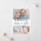 Moderna presentación de 3 fotos en blanco y negro anuncio de nacimiento de mellizos, con un elegante y fresco guión de pincel a mano y puntos de polka en blanco y negro editables en la parte posterior.