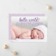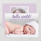 Anuncio Moderno saludo mundo niña bebé púrpura foto nacimi
