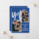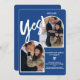 Moderno negrita sí guión 2 fotos arco invitación de compromiso azul boho con un guión de broche fresco. Agrega 2 de tus fotos favoritas.