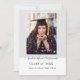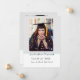 Una moderna invitación de graduación azul acuario con un marco sobre su elección de foto. La parte posterior presenta otra foto y más detalles sobre su graduado.