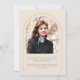 Esta invitación beige de graduación de arco minimalista presenta un marco de arco delicado, 2 plantillas de fotos y una tipografía moderna y elegante.