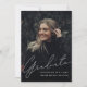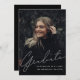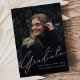 Esta moderna Invitación simple de dos graduaciones fotográficas presenta una foto de tamaño completo en la parte delantera con superposición de texto en blanco y una foto posterior con detalles opcionales.