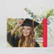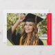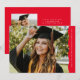 Sencilla pero elegante, esta invitación horizontal de graduación e invitación presenta un moderno y moderno borde ondulado junto con una simple tipografía para anunciar su graduación. Con una gran foto en la parte delantera y otra en la parte trasera, este diseño de grad es una gran manera de mostrar dos fotos senior. El borde ondulado es un rojo clásico con texto blanco. La parte de atrás es un rojo coordinador. En la parte trasera también hay espacio para el texto de la invitación de la fiesta de graduación u otra información como planes futuros. Esta original invitación de graduación única y la invitación de fiesta de graduación de Lea Delaveris Design también está disponible en otros colores y estilos como descarga de archivo digital de invitación de graduación.