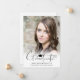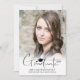 Anuncie el logro de su graduado de secundaria o universitario con esta moderna tarjeta de invitación con un sencillo diseño de título GRADUATE con letras a mano, acentuado por un tope de graduación en su elección de colores y 2 fotos (1 en la parte delantera y 1 en la parte trasera). La parte posterior ofrece un campo de texto para obtener información sobre los logros, actividades y planes futuros de tu graduado si lo deseas. CAMBIOS: cambie cualquier texto o color gráfico en EDIT. ASISTENCIA: Para obtener ayuda con la modificación/personalización del diseño, la transferencia del diseño a otro producto o si desea coordinar elementos, póngase en contacto con el diseñador ANTES DE PEDIDOS a través de la pestaña MENSAJE de conversación Zazzle o envíe un correo electrónico a makeitaboutyoustore@gmail.com.