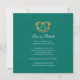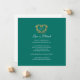Una tarjeta de cancelación de boda con un monograma decorativo de corazón antiguo en oro sobre blanco y un rico verde esmeralda oscuro. Ideal para usar como tarjeta de información de boda para informar a sus invitados de una cancelación de boda o evento, o para reprogramar debido a enfermedad o circunstancias imprevistas. Diseño de corona de corazón decorativo que encierra las iniciales de su propio monograma. En un efecto dorado se lee "boda cancelada, el amor es paciente". Otras opciones de color y artículos coincidentes están disponibles. Diseño original de Sarah Trett para www.mylittleedenweddings.com