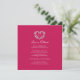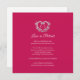 Una tarjeta de cancelación de boda con un monograma decorativo de corazón plateado sobre blanco y un rico rojo de bayas. Ideal para usar como tarjeta de información de boda para informar a sus invitados de una cancelación de boda o evento, o para reprogramar debido a enfermedad o circunstancias imprevistas. Diseño de corona de corazón decorativo que encierra las iniciales de su propio monograma. En un efecto plateado se lee "boda cancelada, el amor es paciente". Otras opciones de color y artículos coincidentes están disponibles. Diseño original de Sarah Trett para www.mylittleedenweddings.com