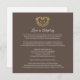 El amor en la boda es adaptarse a no invitar a la boda pero invitar a un evento de transmisión en vivo en su lugar. Simple monograma de corazón decorativo dorado antiguo en blanco y marrón oscuro. Ideal para usar como tarjeta de información de boda para informar a sus invitados de un cambio lamentable en sus planes de boda y circunstancias imprevistas de la pandemia que lo obligan a reducir el número de invitados. Diseño de corona de corazón decorativo que rodea las iniciales de su monograma. En un efecto dorado que dice cambios de boda lamentables el amor es adaptarse. Otras opciones de color y artículos coincidentes están disponibles. Diseño original de Sarah Trett para www.mylittleedenweddings.com