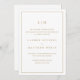 Anuncio de boda simple con un diseño moderno y elegante con su monograma de dos letras en la parte superior y sus detalles rodeados de un borde delgado. Todo el texto está en un dorado falso, sobre un fondo blanco y las fuentes y colores de fondo pueden cambiarse a cualquier color que desee haciendo clic en el botón "personalizar". La plantilla incluye redacción tradicional que hace que este anuncio sea perfecto para una boda formal. Un diseño chic y elegante que es ideal para una pareja minimalista.