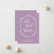 Esta tarjeta de invitación morada "casa nueva" presenta una floral rústica y la frase "nuestro nuevo hogar" escrita en caligrafía encantadora.