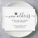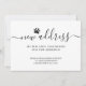 Esta tarjeta de anuncio de mudanza de perro moderna está decorada con tipografía de letra cursiva elegante y una pata de perro.