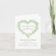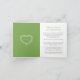 Tarjeta plegada de anuncio de transmisión de video en vivo de boda con monograma de follaje y bayas de muérdago invernal dibujado a mano en verde y blanco. Esta tarjeta simple pero elegante es parte del conjunto de boda de invierno de corona de corazón de hojas y bayas de muérdago dibujado a mano en verde, blanco y gris oscuro. Ideal para usar como tarjeta de información de boda de invierno para informar a sus invitados de un evento de transmisión de boda debido a circunstancias imprevistas. Diseño de dibujo botánico simple de muérdago en forma de corazón. En tonos clásicos de verde de follaje, gris oscuro y blanco. Otras opciones de color están disponibles. Diseño original de Sarah Trett para www.mylittleedenweddings.com