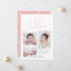 Tarjeta de anuncio de nacimiento simple y moderna para una bebé recién nacida con escritura con letras a mano que dice "hola" en rosa con tres imágenes diferentes.