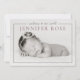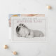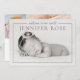 Comparte tu alegría con este simple y moderno anuncio de nacimiento de una bebé. En la parte delantera hay una gran foto con "bienvenido a nuestro mundo" en gris más el nombre y el apellido del bebé en una tipografía moderna de malva oscura. En la parte trasera hay un collage de tres fotos sobre un fondo blanco y todos los detalles importantes incluyendo el nombre del bebé, fecha de nacimiento, estadísticas de nacimiento y nombres de padres en un tipo gris. Fácilmente personalizado con sus propias fotos y texto.