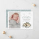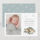 Tarjeta de anuncio de nacimiento de invierno encantador cuenta con un cervatillo ciervo bebé acuarela acurrucado en una cama de vegetación junto a un encabezado de caligrafía "Presentamos" y dulces estadísticas de nacimiento. Los copos de nieve brillantes acentúan el diseño en tonos suaves de salvia, pizarra y beige natural. La parte trasera está vestida con un patrón de copos de nieve coordinado. Un mensaje familiar "Recibido con amor" y todo el texto son totalmente personalizables.