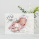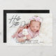 Hello Little One Elegant Script Photo Birth Announement incluye el texto "Hello Little One" en un elegante guión de caligrafía negra con tu foto, nombre y texto adicional favoritos en la tipografía moderna. Diseñado por ©Evco Studio www.zazzle.com/store/evcostudio