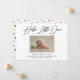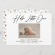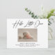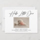 Hello Little One Elegant Script Photo Birth Announement incluye el texto "Hello Little One" en un elegante guión de caligrafía negra con tu foto, nombre y texto adicional favoritos en la tipografía moderna. Diseñado por ©Evco Studio www.zazzle.com/store/evcostudio
