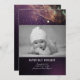 Ciruela morada y oro recién nacido anuncio de nacimiento de foto bebé con estrella de tiro y cielo estrellado de noche