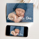 Celebra tu llegada más reciente con esta dulce y moderna tarjeta de presentación de "Our Little One". La parte frontal muestra la foto horizontal de su bebé con "Nuestro pequeño" mostrada en un guión blanco escrito a mano, junto con el nombre de su bebé, la fecha de nacimiento y las estadísticas a continuación. La parte posterior de la tarjeta incluye una foto vertical y un mensaje de agradecimiento al personalizable, que le permite expresar gratitud a sus seres queridos mientras comparte otro momento especial. Perfecto para niños, chicas o invitaciones neutrales desde el punto de vista del género, este diseño de foto adelante hace un gran placer para amigos y familiares.