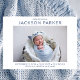 Este anuncio de nacimiento de niño super simple, moderno, minimalista y de 2 fotos es clásico y trendy al mismo tiempo. A todos les encantará recibir dos fotos fabulosas de su nuevo ángel y compartir su alegría y emoción. La fuente es nítida y limpia en un azul suave, muy fácil de leer. Es muy fácil hacer que este anuncio de nacimiento sea tuyo. Seleccione Personalizar esta plantilla, cargue sus 2 fotos horizontales favoritas (una para la parte delantera y otra para la trasera), escriba su información y en segundos podrá ver sus anuncios de nacimiento únicos y asombrosos.