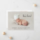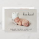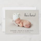 Mínimo anuncio moderno de nacimiento para anunciar la llegada de su recién nacido a la familia y amigos. La foto de tu recién nacido llena el frente y se ve rebosante con "¡ella está aquí!" "¡Está aquí!" o "¡Estoy aquí!" en un guión contemporáneo (puedes mover este texto a otro área de la tarjeta dependiendo de tu foto seleccionando "editar en la herramienta de diseño"). Añada su nombre, fecha de llegada y estadísticas de nacimiento. En el reverso, agregue cuatro fotos familiares adicionales, un mensaje "bienvenido por" y los nombres de los padres y hermanos.