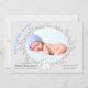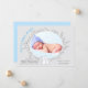© Socialite Designs Inc. & LICENSORS. Anuncie el nacimiento de su bebé con este simple y elegante anuncio de nacimiento de conejo. Los colores son azul y gris. Reemplace la foto de la plantilla con su propia imagen. Hace una hermosa tarjeta de foto de keepsake para la familia y los amigos.