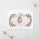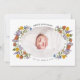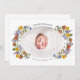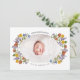 Un diseño elegante con tu foto favorita en una hermosa forma oval rodeada de coloridas acuarelas y flores silvestres. El nombre de su bebé aparece en la parte superior y la fecha de nacimiento en la parte inferior de la tipografía clásica. El reverso presenta el mensaje de su personalizado. Personalice esta tarjeta de foto única para el anuncio de nacimiento de una ducha de bebé gracias / recién nacido haciendo clic en el botón "Personalizar"!