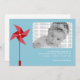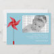 Esta adorable invitación azul de bebé tiene un molino rojo. © Mood 4 Cute