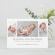 Tarjeta de anuncio de nacimiento moderna con 3 collage de fotos y tipografía clásica.