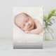 Un anuncio de nacimiento de una foto de presupuesto dulce con un nombre moderno y una foto vertical de la sangre completa. La parte posterior tiene 2 puntos de foto adicionales, un gran encabezado de nombre completo y un mensaje personal de la familia.