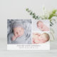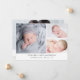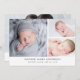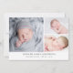 Un minimalista anuncio moderno de nacimiento para compartir las noticias de su bebé recién nacido. Esta tarjeta neutral de género es perfecta para una niña o bebé, con la parte delantera con un collage de 3 fotos con el nombre del bebé en una tipografía simple. Personaliza con fecha de nacimiento, peso y altura. En el reverso aparece una foto con los nombres de los padres
