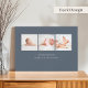 Un diseño de anuncio de nacimiento simple y atemporal que incluye una foto horizontal o orientada al paisaje con el nombre del bebé y las estadísticas de nacimiento colocadas en el fondo con letras blancas clásicas. Añade tres fotos cuadradas adicionales a la parte posterior, junto con un mensaje personal.