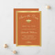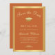 Envíe a su familia y amigos una graduación elegante, salvo el anuncio de fecha con antecedentes naranjas con caligrafía de oro de fuax y gorra de oro bordeada por un marco dorado. Personaliza con tus detalles de graduación. Diseñado por Susan Coffey.